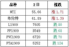 2日国际油价收涨,WTI原油期货上涨1.71美元,或3.17%,收报每桶55.66美元。布伦特原油期货上涨1.39美元,涨幅2.30%,收报每桶61.89美元。