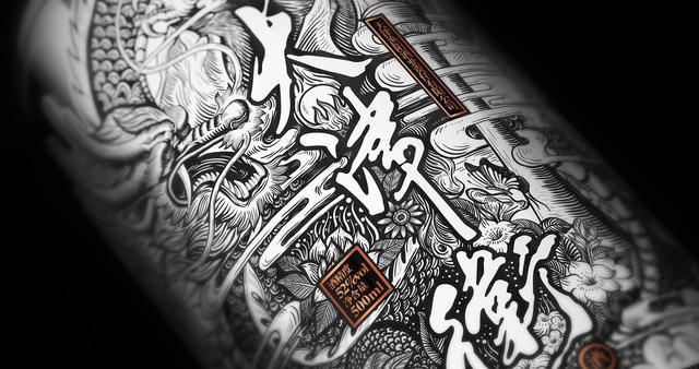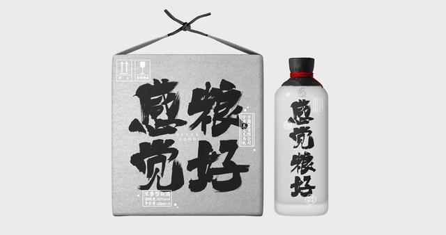 通过细腻的磨砂玻璃瓶结合狂放不羁的书法字体,营造了一款简约而不简单的白酒产品。
